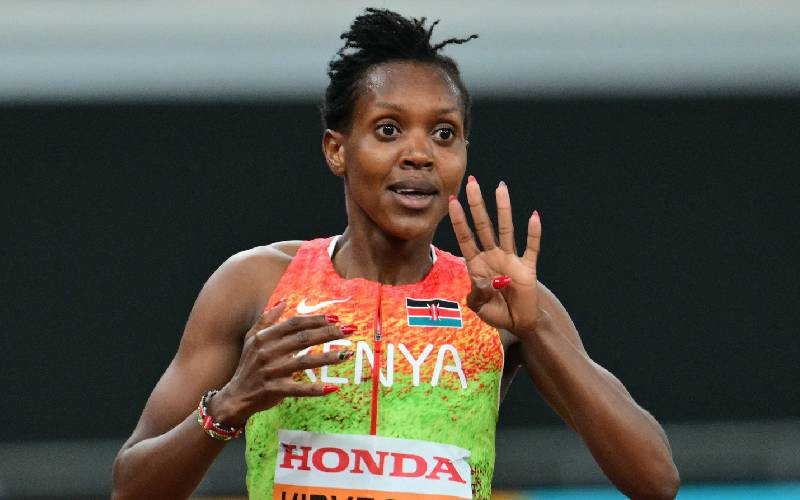 Faith Kipyegon after winning the women's 1500m final during the World Athletics Championships in Tokyo. [AFP]