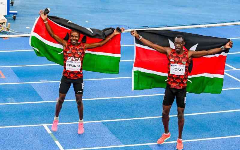 Kenya's James Musembi Mwanza and Elikana Kiprop Rono bagged gold and silver respectively in the men's 1500M race. [Ochieng Oyugi, Standard]