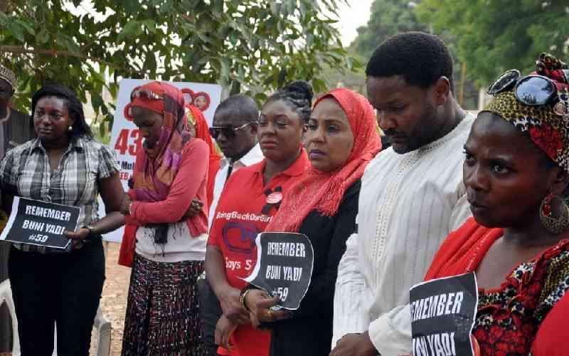 Members of a civil society group carry placards in remembrance of 59 secondary school students of Federal Government College massacred by Boko Haram Islamists a year ago in Buni Yadi, Yobe State, during a rally in Abuja, on February 25, 2015. [AFP]