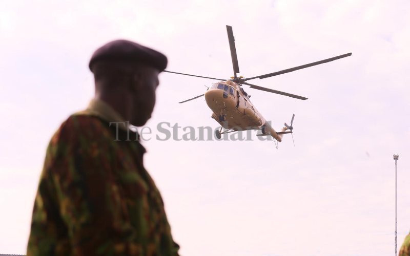 8:32 AM - Chopper carrying military officers lands at Jomo Kenyatta International Stadium in Mamboleo; aircraft transporting Raila Odinga’s body expected to arrive shortly.