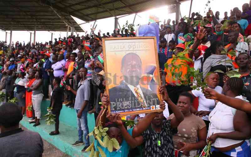 PHOTOS: Thousands throng Mamboleo Grounds ahead of Raila Odinga's body viewing