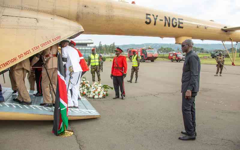 Meanwhile, Interior Principal Secretary, Governor Anyang' Nyong'o, and a host of security officials inspected the Jomo Kenyatta Stadium, where the public viewing of the body of the former Prime Minister is expected to take place.